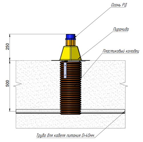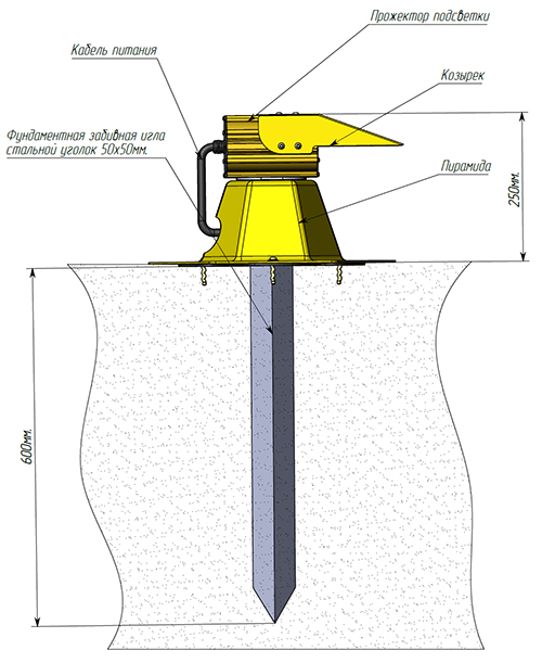 Установка прожектора подсветки зоны TLOF на грунт на пирамиду