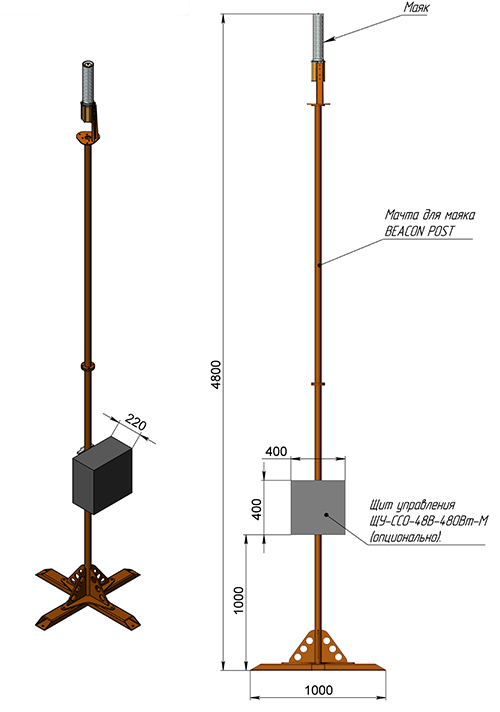 Универсальное крепление маяка или ветроуказателя 300х1500 на крышу